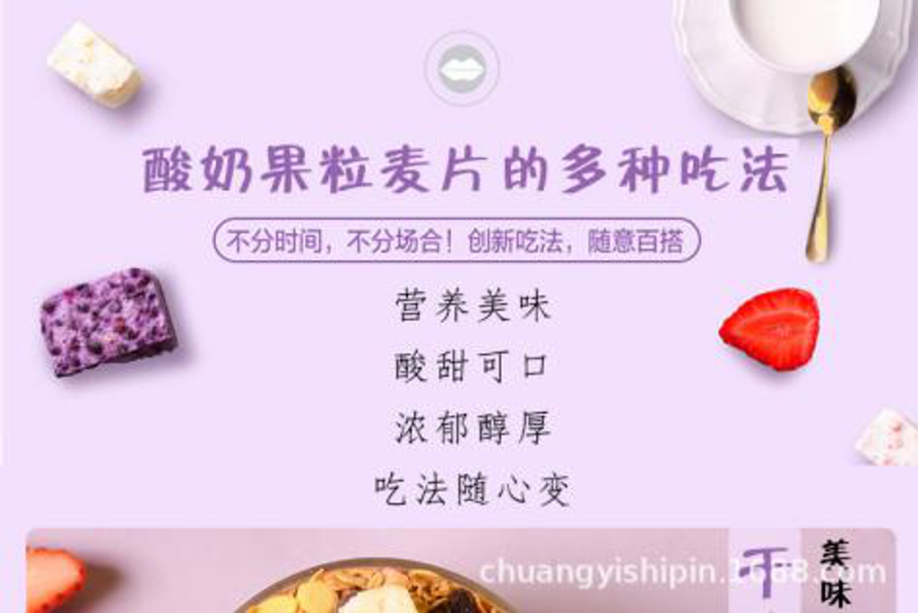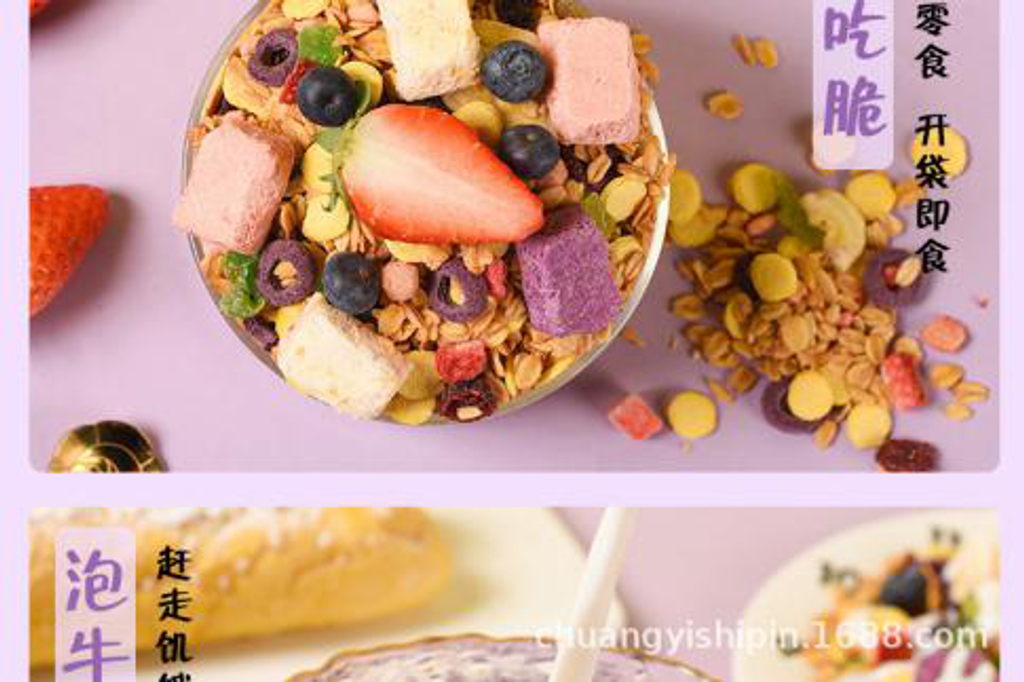 烘焙燕麦片,玉米片,紫薯圈,葡萄干,蔓越莓,猕猴桃干,红提干,谷物脆,香蕉干,草莓丁,酸奶块